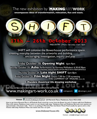 Shift was the 1st exhibition by Making Art Work that I was involved in, both showing my work and creating a graphic identity for the show. Producing a flyer and poster with it.