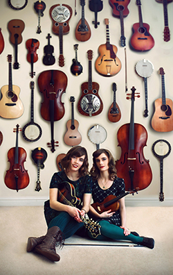 Identical twin sisters Charlotte and Laura Carrivick have grown up playing and writing music together; their unique style shows their strong Folk and Bluegrass influences without obscuring their English roots. Produced and recorded by Joe Rusby, Over The Edge is the sisters’ 5th album of finely crafted songs and their best to date. The album demonstrates tight harmonies and a strong connection that only siblings can achieve. The multitalented duo perform their original songs on guitar, fiddle, mandolin, dobro and clawhammer banjo with clarity and skill. Both sisters have had varied musical influences throughout their lives. Laura started out with classical violin at 10 but was soon more interested in Folk music playing along to Chieftains CD’s. Charlotte also started out classically, but in her case with the guitar. She picked up the mandolin a few year’s later and in 2003 they attended the ‘Sore Fingers’ Bluegrass course. This was where Laura first heard the dobro, which she then also decided to learn. In recent years Charlotte has taken up the clawhammer banjo, bringing a more ‘old timey’ feel to their sound. The sisters come with a stack of awards under their belt, having won the South West Buskers and Street Entertainers Competition, which earned them their first spot at Glastonbury Festival. In 2008 Laura achieved 2nd place at the RockyGrass Fiddle Contest in America and in 2010 the sisters started as runners-up in the BBC Young Folk Awards. After the release of “From The Fields” they won Band/Duo of the Year award in the 2011 FATEA Awards and most recently Charlotte won first place in both Old-time banjo and fiddle at FOAOTMAD's festival in Gainsborough. Other highlights included a live session on BBC’s Woman’s Hour and several regional TV and radio appearances. Over The Edge features 11 originals (9 songs, 2 instrumentals) and one traditional song. John Breese plays double bass throughout and features Blair Dunlop on harmonies on track ‘Bird’. The album cover was inspired by a Rex Whistler painting used for a poster to advertise an exhibition at the Tate. “It almost had something to represent each song on the album in the painting so Laura repainted it, altered bits and made it fit perfectly!” Charlotte Carrivick